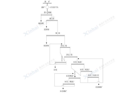 阿爾巴尼亞長石礦,原礦含K2O4.37%、Na2O3.38%、Fe2O30.48%、SiO277.56%、Al2O312.13%,客戶期望回收該礦石中的長石。